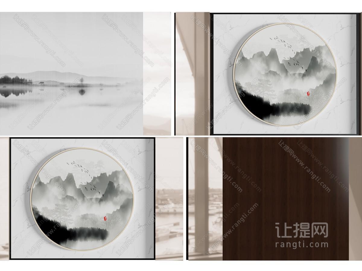 新中式背景墙3d模型