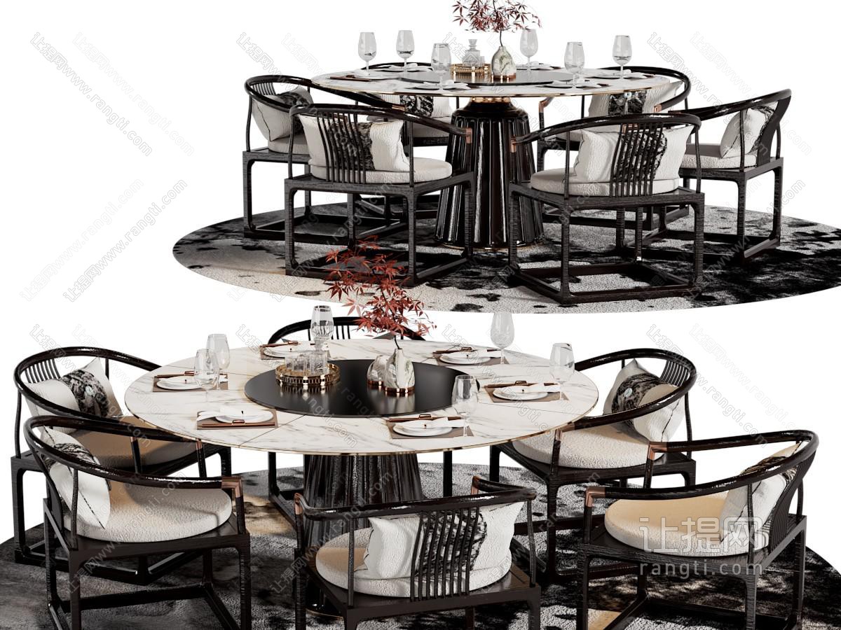 新中式圆形餐桌椅组合3d模型