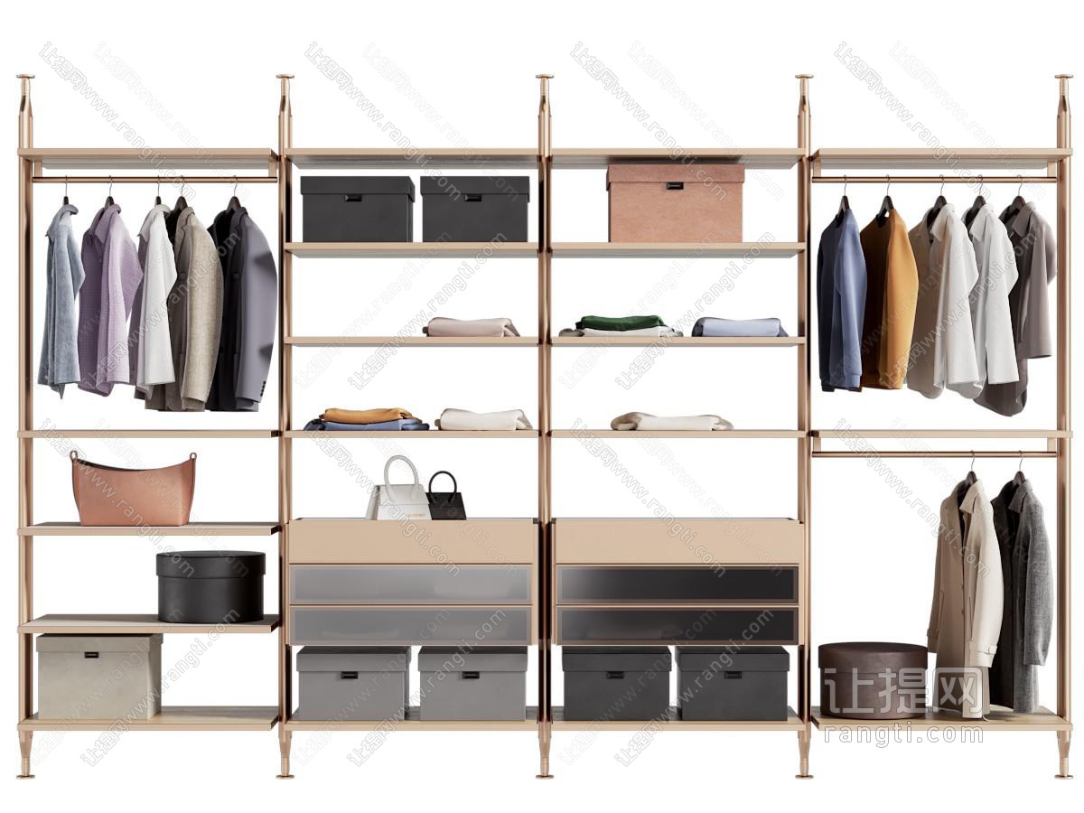 现代开放式衣柜3d模型