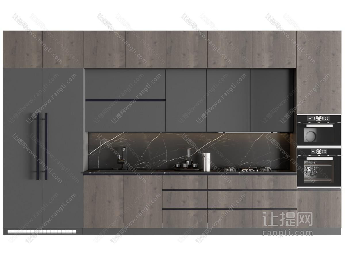 现代嵌入冰箱 烤箱的酒柜3d模型