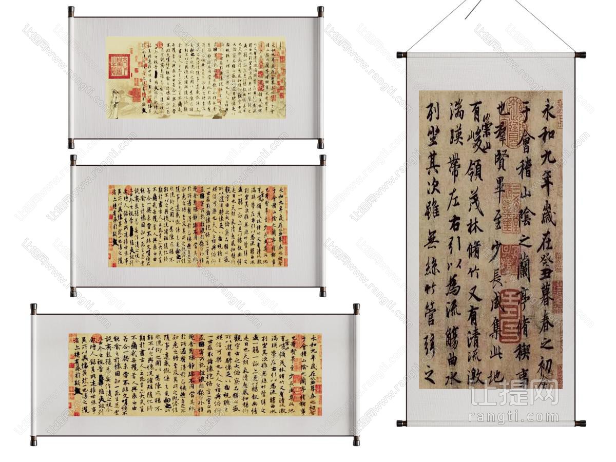 新中式书法字画装饰挂画3d模型
