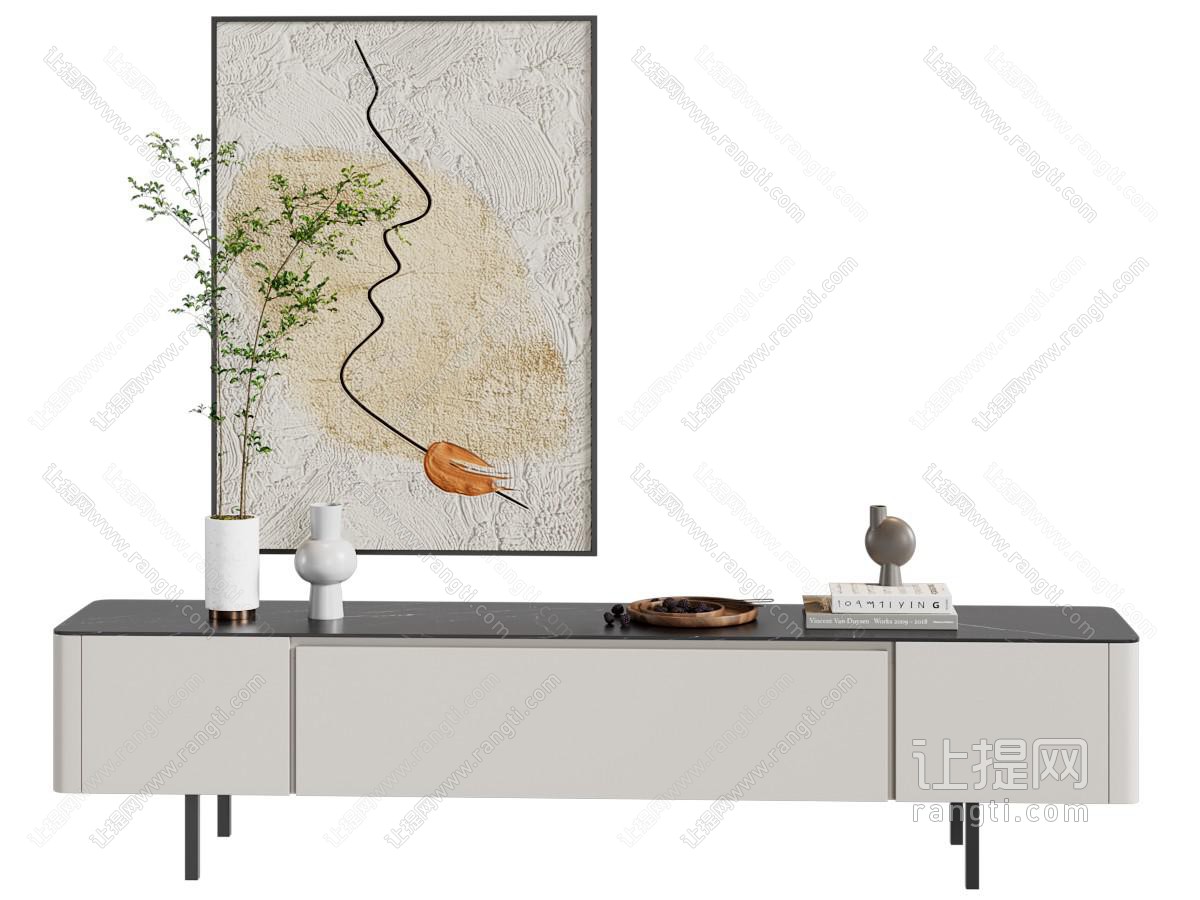 现代电视柜 装饰挂画3d模型