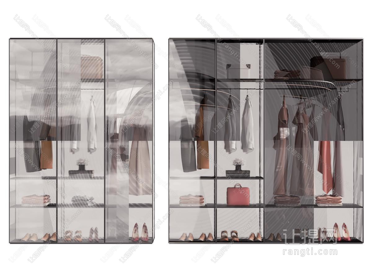 现代玻璃柜门的衣柜 衣服3d模型
