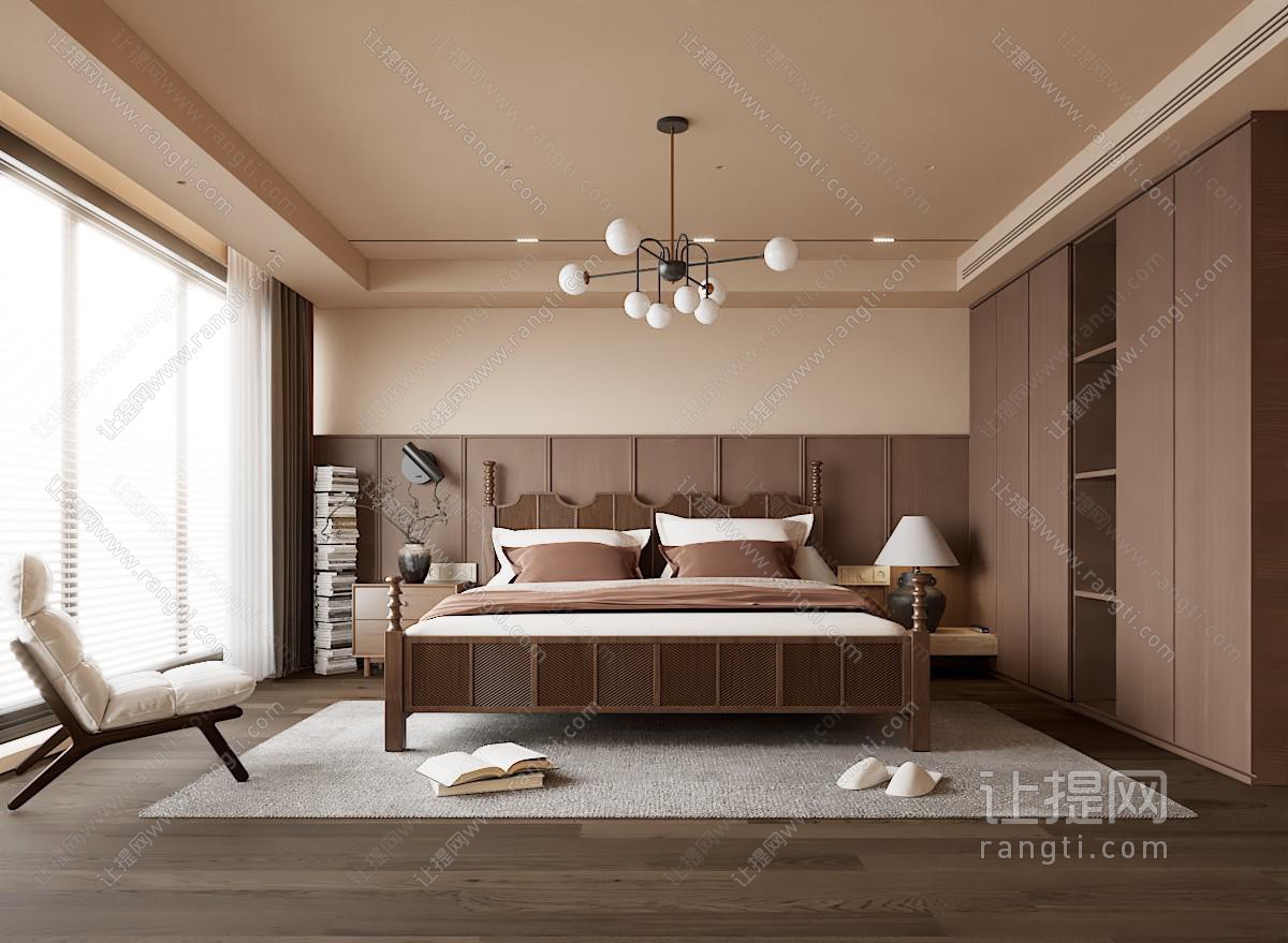 侘寂中古风卧室3d模型
