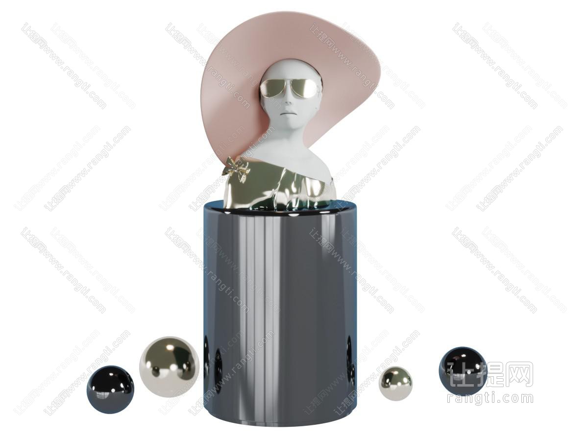 现代戴墨镜的半身女人雕塑雕刻3d模型