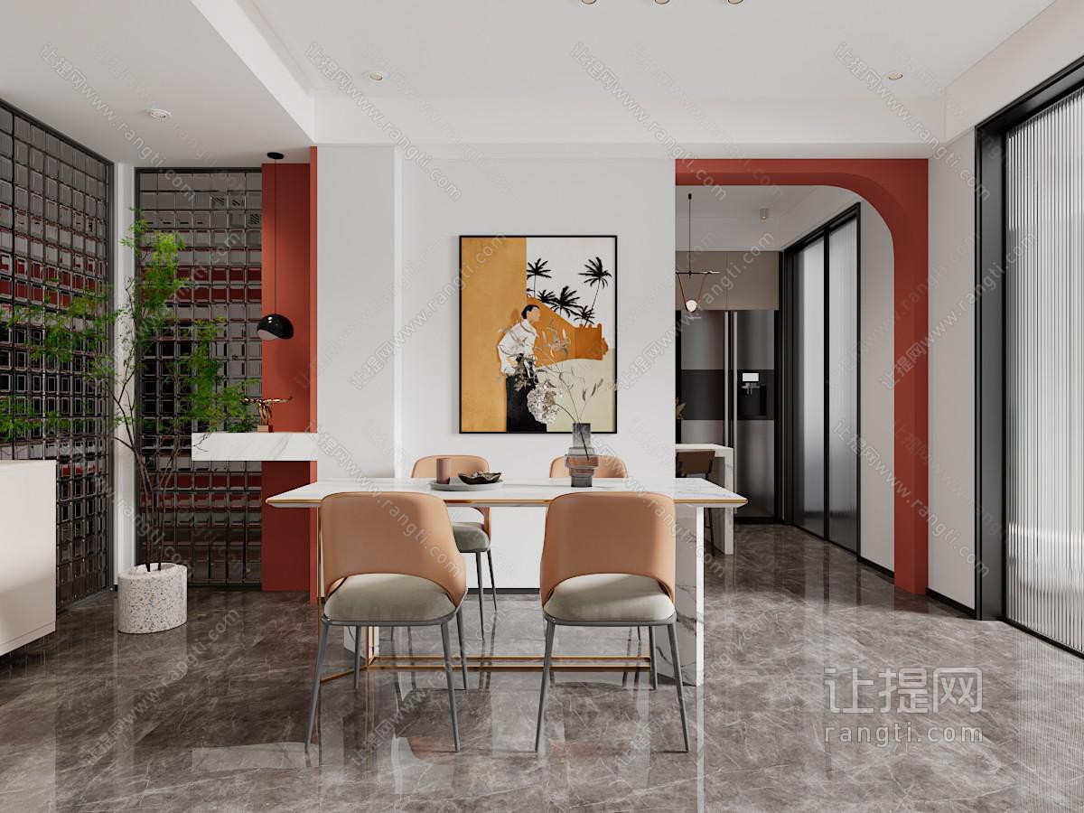 现代轻奢餐厅3d模型