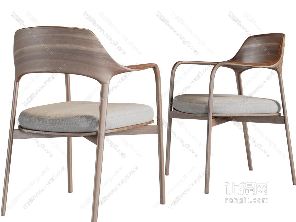 北欧实木休闲椅子3d模型