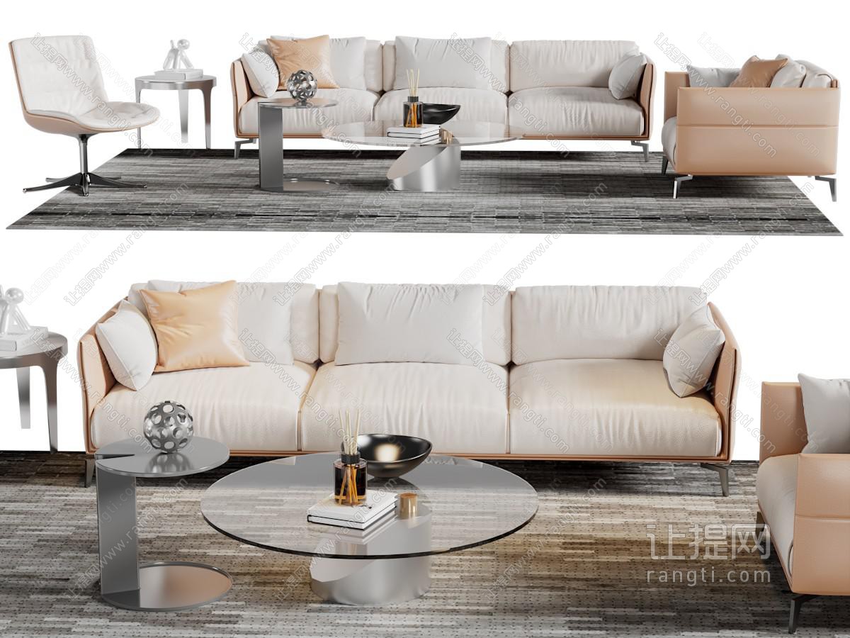 现代多人沙发、休闲椅子、茶几组合3d模型